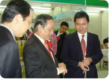 台湾新党主席郁慕明在林博会上与康永松总策划交谈